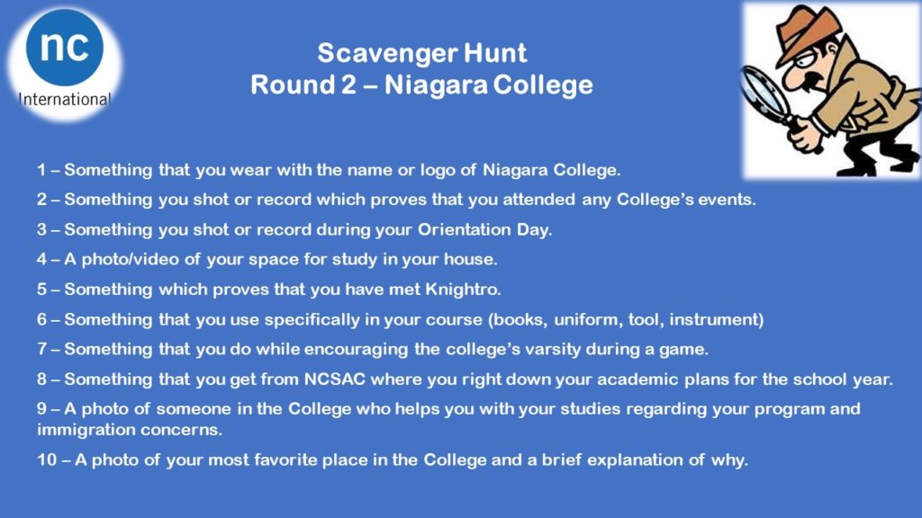 We will have three themed hunts. Each list will be posted in our Social Media and here on the activities calendar on Thursday, April 9th. Round One: International will be posted at 9:00 am, Round Two: Niagara College at 12:00 pm and Round Three: Canada at 3:00 pm.